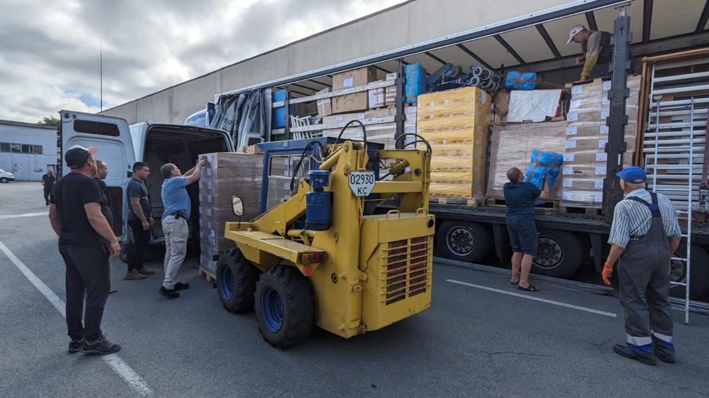Ще одна вантажівка допомоги вже в Україні! Хліб, реабілітаційні ліжка, лікарняні матраци, подушки з кісточками для лікарень, УЗД обладнання, адаптований одяг, електричні плити, фільтри для води, столики для лікарняних ліжок та багато іншого. Все тільки в руки надійних партнерів і відразу до отримувачів – в Донецьку, Київську, Харківську області та в місто Херсон. Слава Україні!