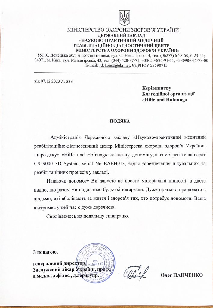Das Röntgengerät CS 9000 3D System wurde an das Rehabilitations- und Diagnosezentrum des Gesundheitsministeriums der Ukraine übergeben. Solche „space“ aussehenden Geräte haben eine eigene, individuelle Nummer, die für den Aufenthaltsort festgelegt ist. Im Notfall können die Ärzte schnell das dem Patienten am nächsten gelegene Gerät finden. Jetzt ist dieses Gerät in der weltweiten Datenbank enthalten. Ein solches Glück hat man nicht alle Tage, aber wir versuchen, mehr davon zu haben! Auf jeden Fall kommen wir voran. Wir danken unseren engagierten Freunden aus Köln Johann Becker, Vlad Tyshkovskiy und Ralf Link für ihre Mithilfe beim Zustandekommen des Transports (sachgerechte Verpackung und Abholung von einer Arztpraxis in Köln). Slava Ukraini !
